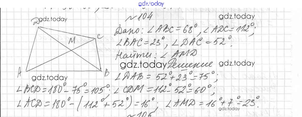 Ответы к Вариант 1 Решение к упражнениям 104 Дидактическим материалам по Геометрии для 8 класса Мерзляк, Полонский Вентана-граф Алгоритм успеха 2017