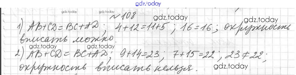 Ответы к Вариант 1 Решение к упражнениям 108 Дидактическим материалам по Геометрии для 8 класса Мерзляк, Полонский Вентана-граф Алгоритм успеха 2017