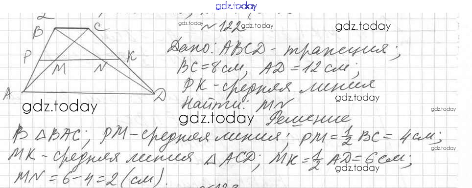 Ответы к Вариант 1 Решение к упражнениям 122 Дидактическим материалам по Геометрии для 8 класса Мерзляк, Полонский Вентана-граф Алгоритм успеха 2017