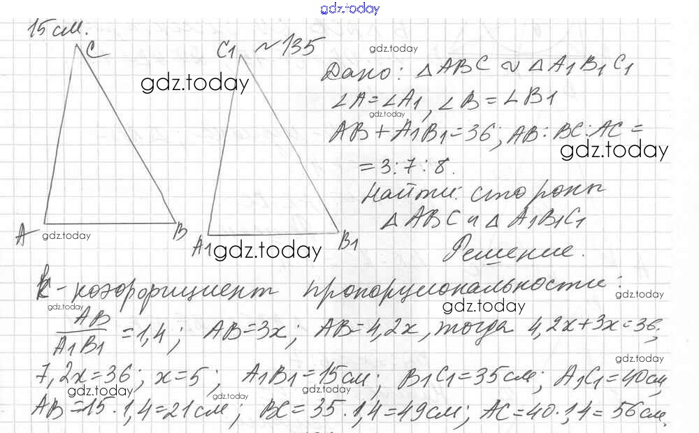 Ответы к Вариант 1 Решение к упражнениям 135 Дидактическим материалам по Геометрии для 8 класса Мерзляк, Полонский Вентана-граф Алгоритм успеха 2017