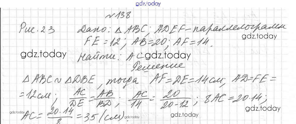 Ответы к Вариант 1 Решение к упражнениям 138 Дидактическим материалам по Геометрии для 8 класса Мерзляк, Полонский Вентана-граф Алгоритм успеха 2017