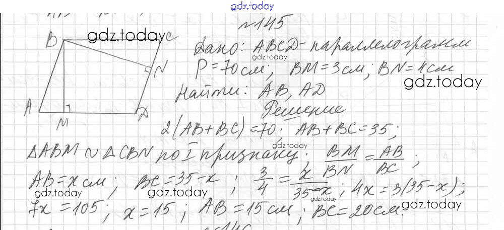 Ответы к Вариант 1 Решение к упражнениям 145 Дидактическим материалам по Геометрии для 8 класса Мерзляк, Полонский Вентана-граф Алгоритм успеха 2017