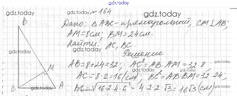 Ответы к Вариант 1 Решение к упражнениям 164 Дидактическим материалам по Геометрии для 8 класса Мерзляк, Полонский Вентана-граф Алгоритм успеха 2017