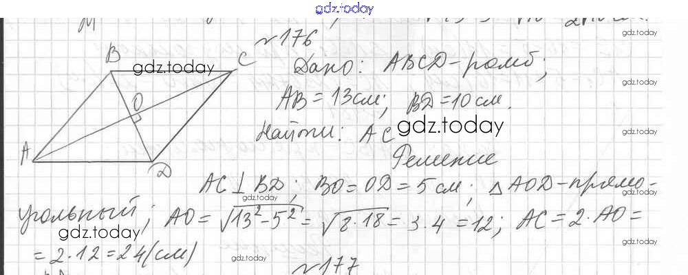 Ответы к Вариант 1 Решение к упражнениям 176 Дидактическим материалам по Геометрии для 8 класса Мерзляк, Полонский Вентана-граф Алгоритм успеха 2017