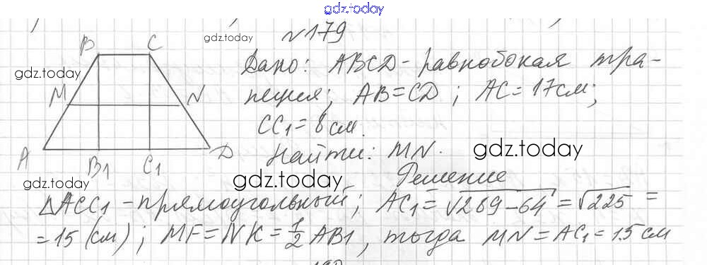 Ответы к Вариант 1 Решение к упражнениям 179 Дидактическим материалам по Геометрии для 8 класса Мерзляк, Полонский Вентана-граф Алгоритм успеха 2017