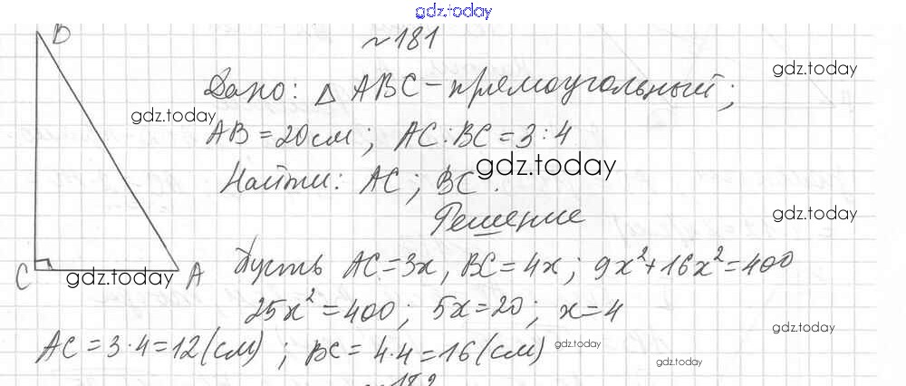 Ответы к Вариант 1 Решение к упражнениям 181 Дидактическим материалам по Геометрии для 8 класса Мерзляк, Полонский Вентана-граф Алгоритм успеха 2017