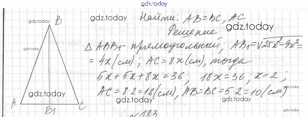 Ответы к Вариант 1 Решение к упражнениям 182 Дидактическим материалам по Геометрии для 8 класса Мерзляк, Полонский Вентана-граф Алгоритм успеха 2017