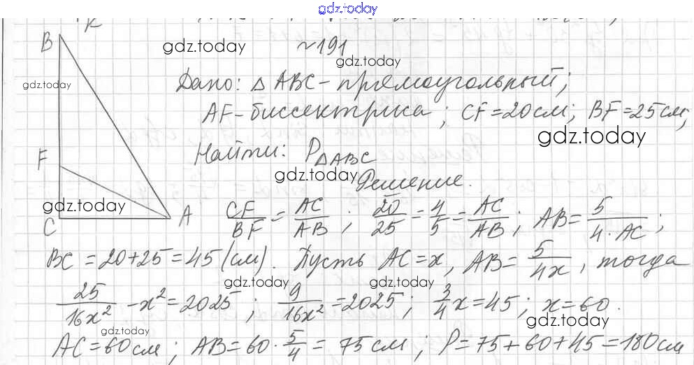 Ответы к Вариант 1 Решение к упражнениям 191 Дидактическим материалам по Геометрии для 8 класса Мерзляк, Полонский Вентана-граф Алгоритм успеха 2017
