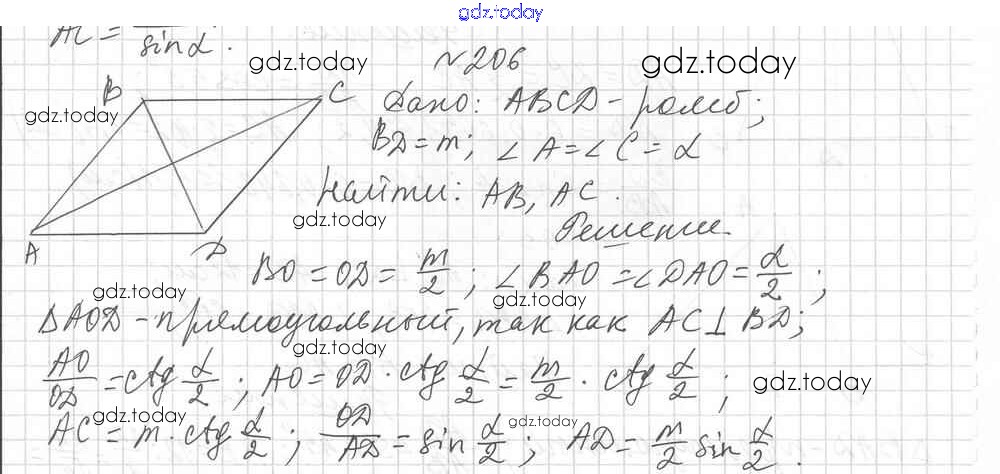 Ответы к Вариант 1 Решение к упражнениям 206 Дидактическим материалам по Геометрии для 8 класса Мерзляк, Полонский Вентана-граф Алгоритм успеха 2017