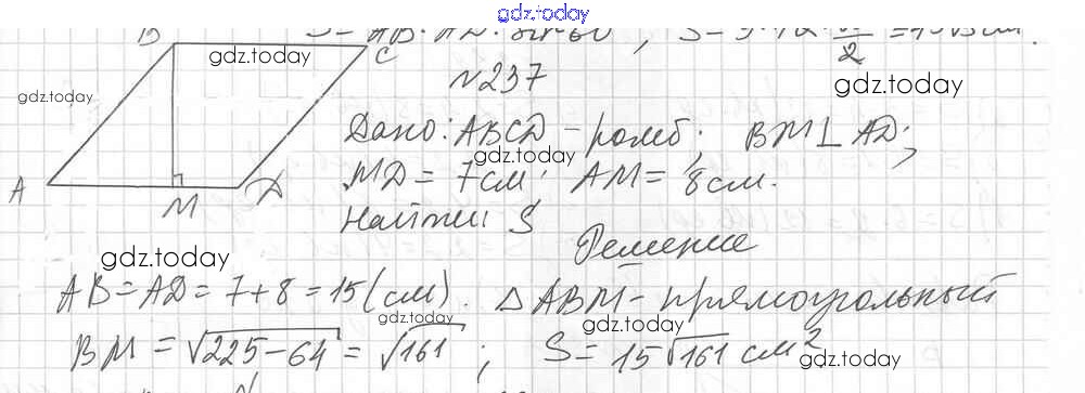 Ответы к Вариант 1 Решение к упражнениям 237 Дидактическим материалам по Геометрии для 8 класса Мерзляк, Полонский Вентана-граф Алгоритм успеха 2017