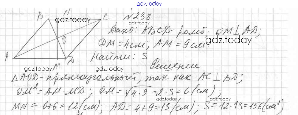 Ответы к Вариант 1 Решение к упражнениям 238 Дидактическим материалам по Геометрии для 8 класса Мерзляк, Полонский Вентана-граф Алгоритм успеха 2017