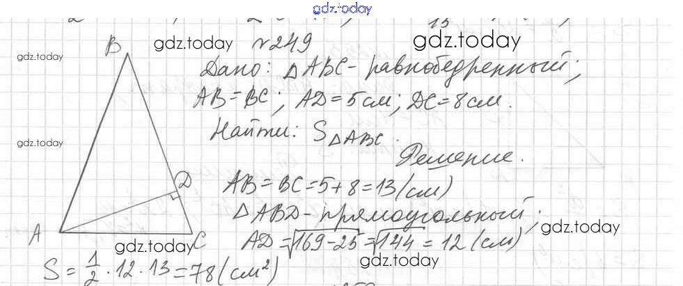 Ответы к Вариант 1 Решение к упражнениям 249 Дидактическим материалам по Геометрии для 8 класса Мерзляк, Полонский Вентана-граф Алгоритм успеха 2017