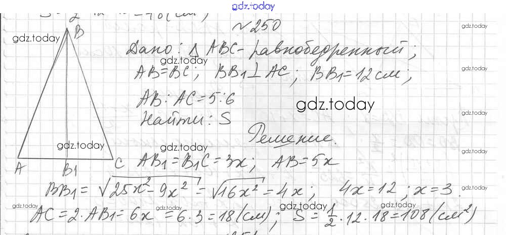 Ответы к Вариант 1 Решение к упражнениям 250 Дидактическим материалам по Геометрии для 8 класса Мерзляк, Полонский Вентана-граф Алгоритм успеха 2017