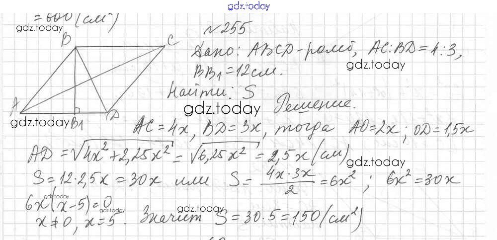 Ответы к Вариант 1 Решение к упражнениям 255 Дидактическим материалам по Геометрии для 8 класса Мерзляк, Полонский Вентана-граф Алгоритм успеха 2017