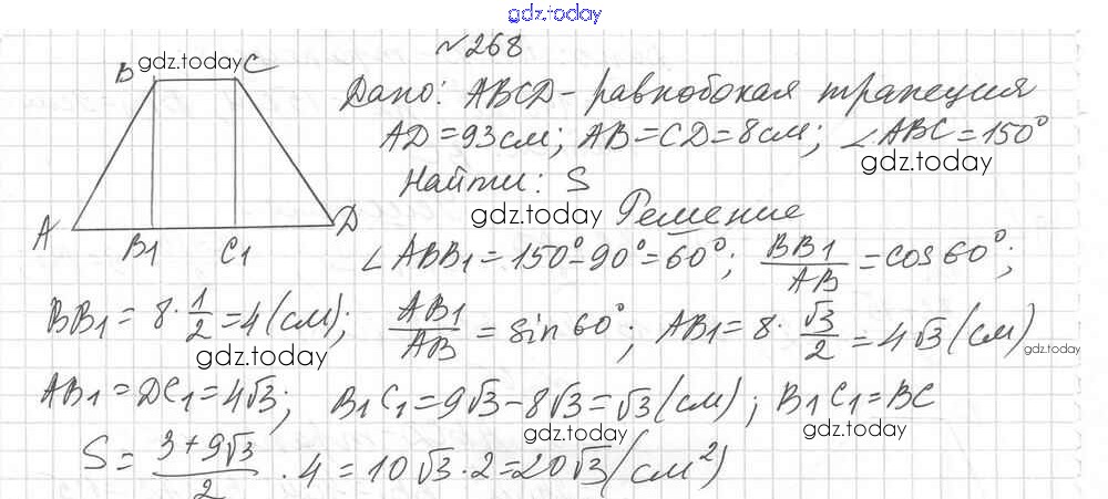 Ответы к Вариант 1 Решение к упражнениям 268 Дидактическим материалам по Геометрии для 8 класса Мерзляк, Полонский Вентана-граф Алгоритм успеха 2017