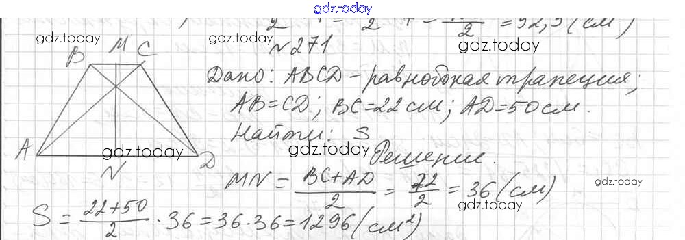 Ответы к Вариант 1 Решение к упражнениям 271 Дидактическим материалам по Геометрии для 8 класса Мерзляк, Полонский Вентана-граф Алгоритм успеха 2017