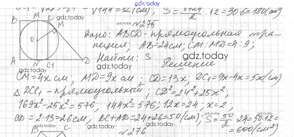 Ответы к Вариант 1 Решение к упражнениям 275 Дидактическим материалам по Геометрии для 8 класса Мерзляк, Полонский Вентана-граф Алгоритм успеха 2017