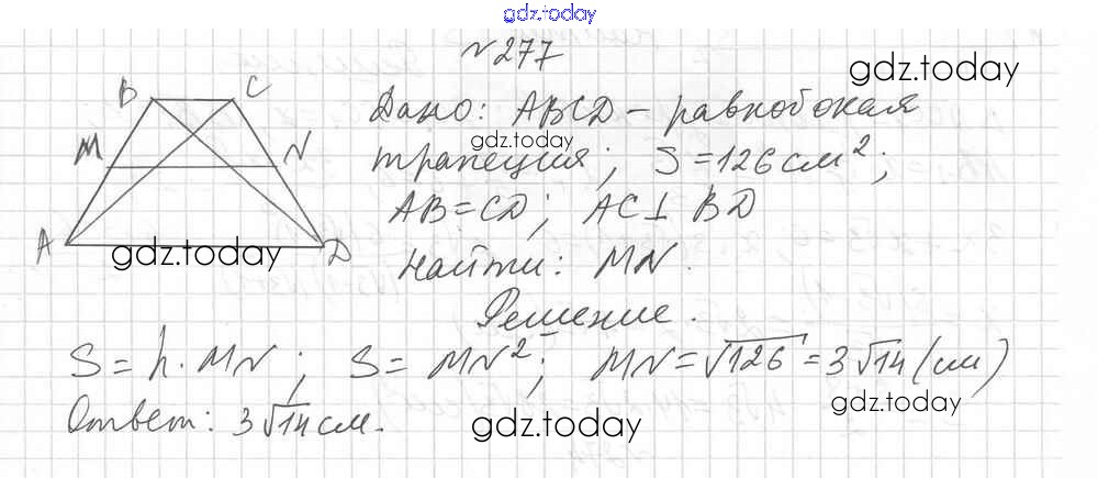 Ответы к Вариант 1 Решение к упражнениям 277 Дидактическим материалам по Геометрии для 8 класса Мерзляк, Полонский Вентана-граф Алгоритм успеха 2017