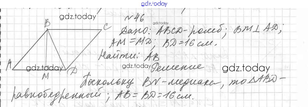 Ответы к Вариант 1 Решение к упражнениям 46 Дидактическим материалам по Геометрии для 8 класса Мерзляк, Полонский Вентана-граф Алгоритм успеха 2017