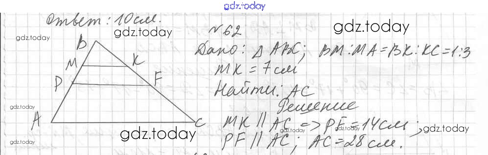 Ответы к Вариант 1 Решение к упражнениям 62 Дидактическим материалам по Геометрии для 8 класса Мерзляк, Полонский Вентана-граф Алгоритм успеха 2017