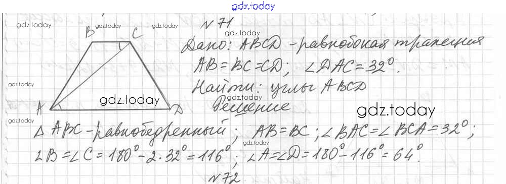 Ответы к Вариант 1 Решение к упражнениям 71 Дидактическим материалам по Геометрии для 8 класса Мерзляк, Полонский Вентана-граф Алгоритм успеха 2017
