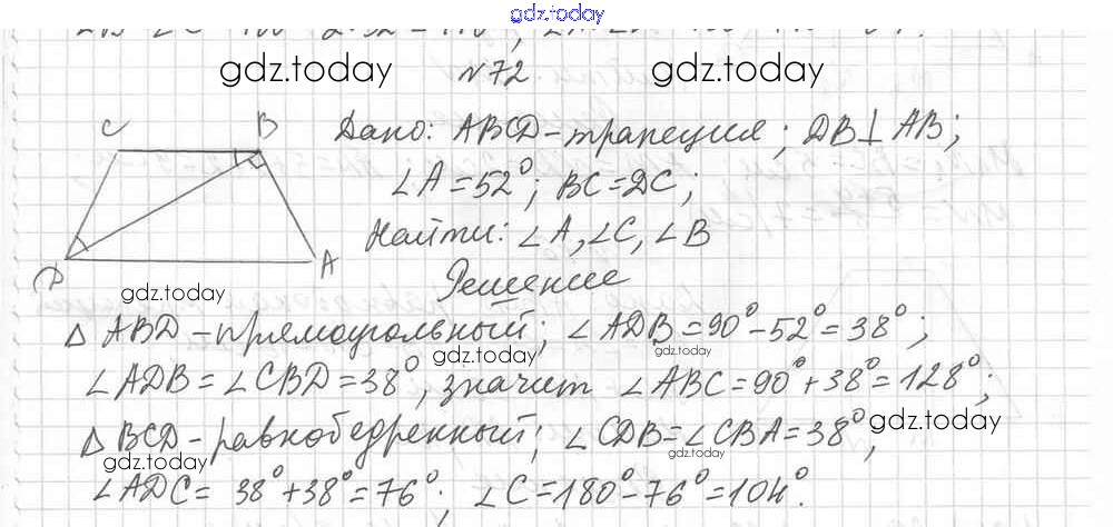 Ответы к Вариант 1 Решение к упражнениям 72 Дидактическим материалам по Геометрии для 8 класса Мерзляк, Полонский Вентана-граф Алгоритм успеха 2017
