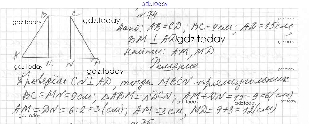 Ответы к Вариант 1 Решение к упражнениям 74 Дидактическим материалам по Геометрии для 8 класса Мерзляк, Полонский Вентана-граф Алгоритм успеха 2017
