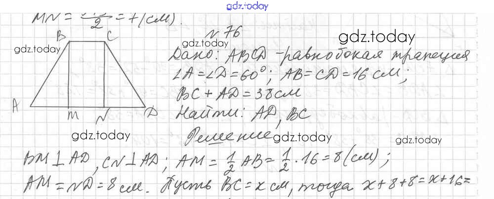 Ответы к Вариант 1 Решение к упражнениям 76 Дидактическим материалам по Геометрии для 8 класса Мерзляк, Полонский Вентана-граф Алгоритм успеха 2017