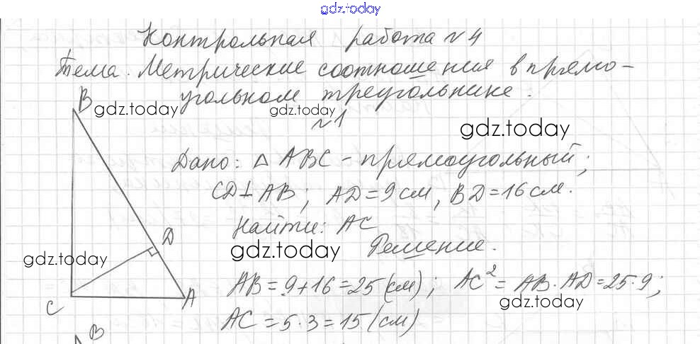 На страницах сайта gdz.today вы найдете учебный и вспомогательный материал, направленный на улучшения знаний школьной программы. ГДЗ - онлайн мир знаний Вариант 1 Решение к контрольным работам КР-4 Дидактическим материалам по Геометрии для 8 класса Мерзляк, Полонский Вентана-граф Алгоритм успеха 2017