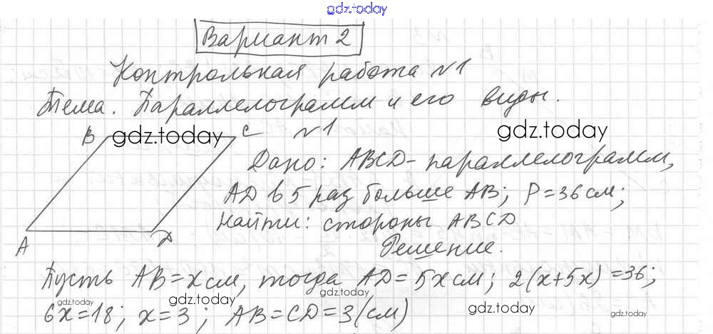 На страницах сайта gdz.today вы найдете учебный и вспомогательный материал, направленный на улучшения знаний школьной программы. ГДЗ - онлайн мир знаний Вариант 2 Решение к контрольным работам КР-1 Дидактическим материалам по Геометрии для 8 класса Мерзляк, Полонский Вентана-граф Алгоритм успеха 2017