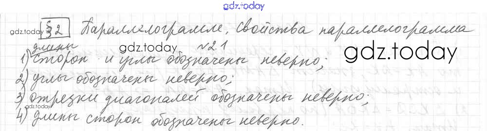 На страницах сайта gdz.today вы найдете учебный и вспомогательный материал, направленный на улучшения знаний школьной программы. ГДЗ - онлайн мир знаний § 2. Параллелограмм и его свойства Решение к главе 1. Многоугольники. Четырехугольники 1 Учебнику по Геометрии для 8 класса Мерзляк, Поляков Углубленный уровень Вентана-граф Алгоритм успеха 2020