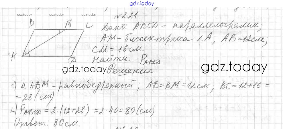 Ответы к § 2. Параллелограмм и его свойства Решение к главе 1. Многоугольники. Четырехугольники 21 Учебнику по Геометрии для 8 класса Мерзляк, Поляков Углубленный уровень Вентана-граф Алгоритм успеха 2020