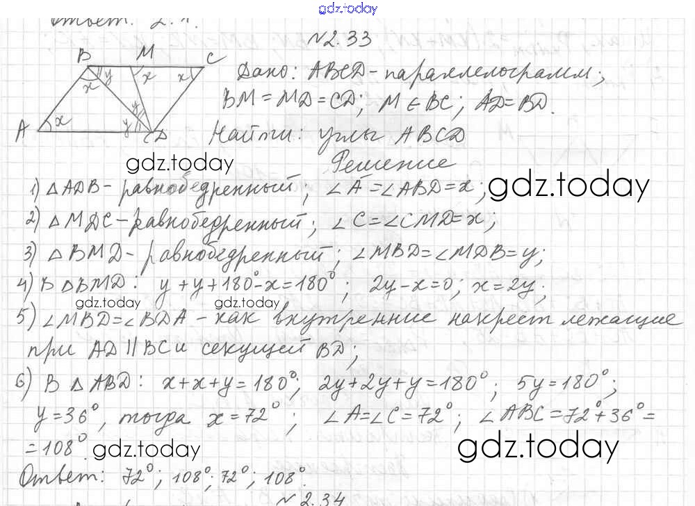 Ответы к § 2. Параллелограмм и его свойства Решение к главе 1. Многоугольники. Четырехугольники 33 Учебнику по Геометрии для 8 класса Мерзляк, Поляков Углубленный уровень Вентана-граф Алгоритм успеха 2020