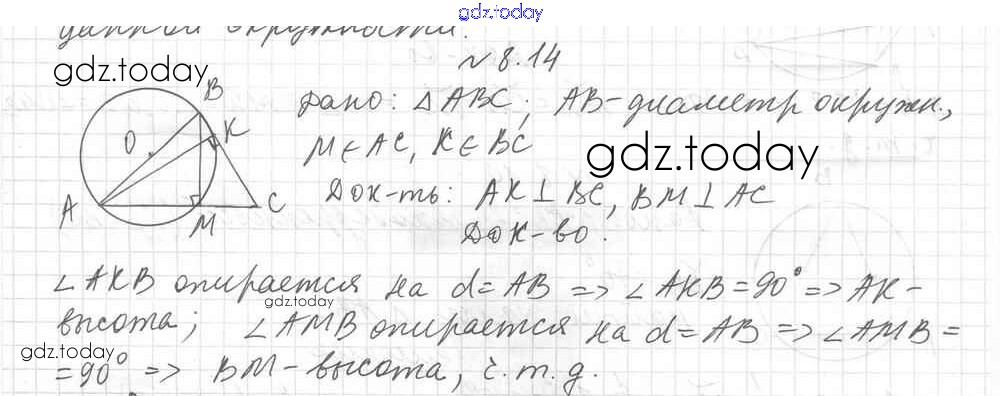 Ответы к § 8. Центральные и вписанные углы Решение к главе 2. Вписанные и описанные четырехугольники 14 Учебнику по Геометрии для 8 класса Мерзляк, Поляков Углубленный уровень Вентана-граф Алгоритм успеха 2020