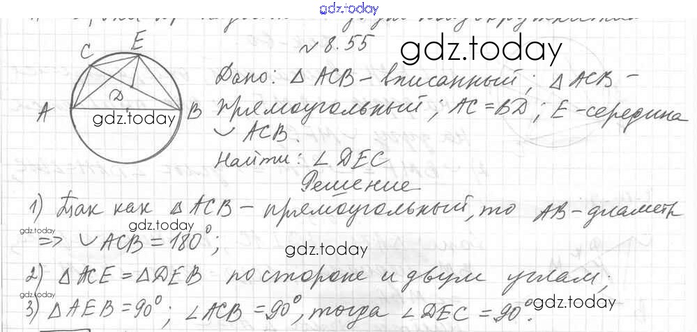 Ответы к § 8. Центральные и вписанные углы Решение к главе 2. Вписанные и описанные четырехугольники 55 Учебнику по Геометрии для 8 класса Мерзляк, Поляков Углубленный уровень Вентана-граф Алгоритм успеха 2020