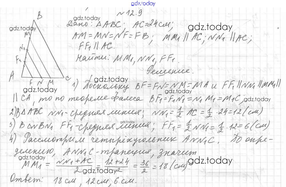 Ответы к § 12. Теорема Фалеса Решение к главе 3. Подобие треугольников 9 Учебнику по Геометрии для 8 класса Мерзляк, Поляков Углубленный уровень Вентана-граф Алгоритм успеха 2020