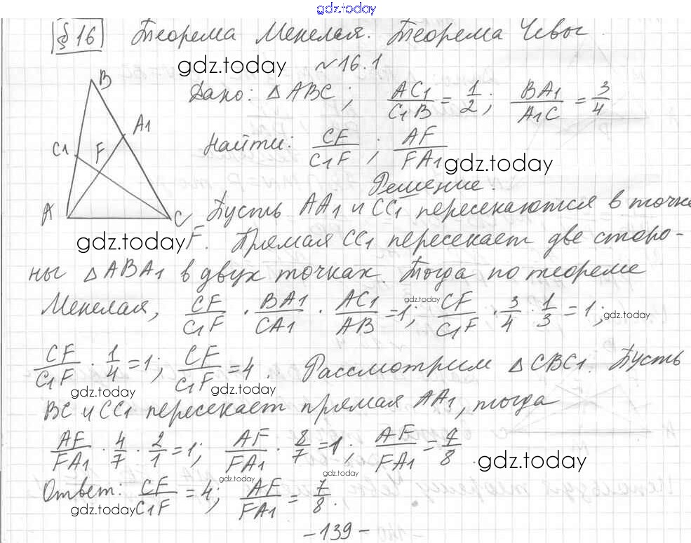 Ответы к § 16. Теорема Менелая Решение к главе 3. Подобие треугольников 1 Учебнику по Геометрии для 8 класса Мерзляк, Поляков Углубленный уровень Вентана-граф Алгоритм успеха 2020