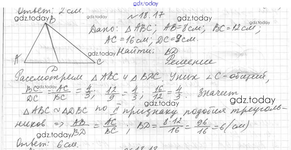 Ответы к § 18. Второй и третий признаки подобия треугольников Решение к главе 3. Подобие треугольников 17 Учебнику по Геометрии для 8 класса Мерзляк, Поляков Углубленный уровень Вентана-граф Алгоритм успеха 2020