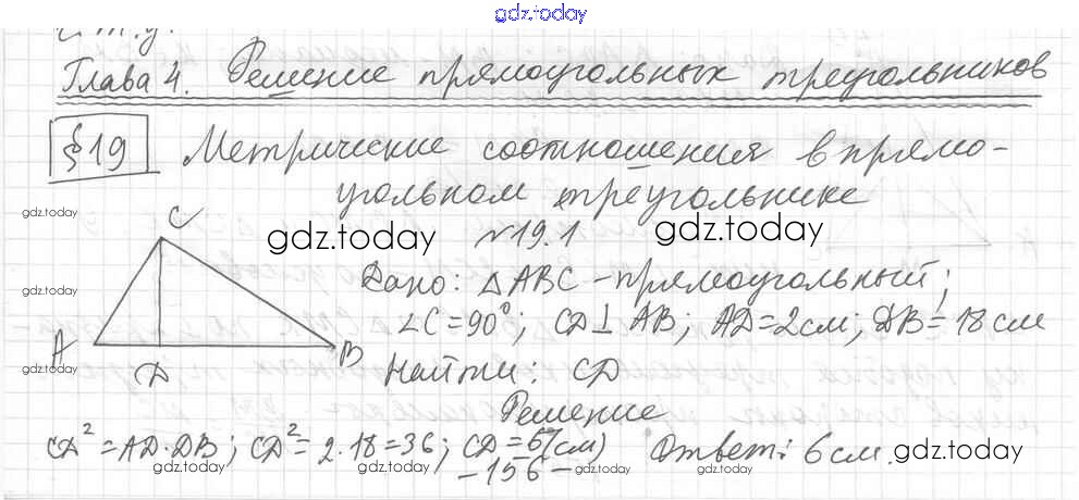 На страницах сайта gdz.today вы найдете учебный и вспомогательный материал, направленный на улучшения знаний школьной программы. ГДЗ - онлайн мир знаний § 19. Метрические соотношения в прямоугольном треугольнике Решение к главе 4. Решение прямоугольных треугольников 1 Учебнику по Геометрии для 8 класса Мерзляк, Поляков Углубленный уровень Вентана-граф Алгоритм успеха 2020