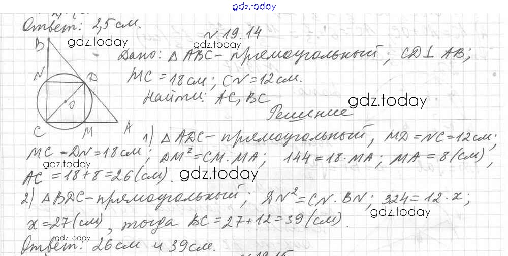 Ответы к § 19. Метрические соотношения в прямоугольном треугольнике Решение к главе 4. Решение прямоугольных треугольников 14 Учебнику по Геометрии для 8 класса Мерзляк, Поляков Углубленный уровень Вентана-граф Алгоритм успеха 2020