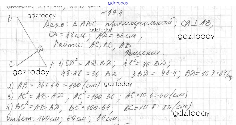 Ответы к § 19. Метрические соотношения в прямоугольном треугольнике Решение к главе 4. Решение прямоугольных треугольников 4 Учебнику по Геометрии для 8 класса Мерзляк, Поляков Углубленный уровень Вентана-граф Алгоритм успеха 2020