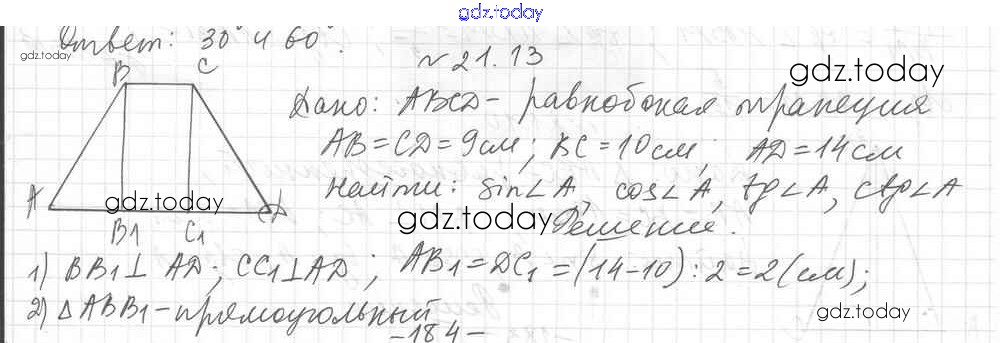 На страницах сайта gdz.today вы найдете учебный и вспомогательный материал, направленный на улучшения знаний школьной программы. ГДЗ - онлайн мир знаний § 21. Тригонометрические функции острого угла прямоугольного треугольника Решение к главе 4. Решение прямоугольных треугольников 13 Учебнику по Геометрии для 8 класса Мерзляк, Поляков Углубленный уровень Вентана-граф Алгоритм успеха 2020