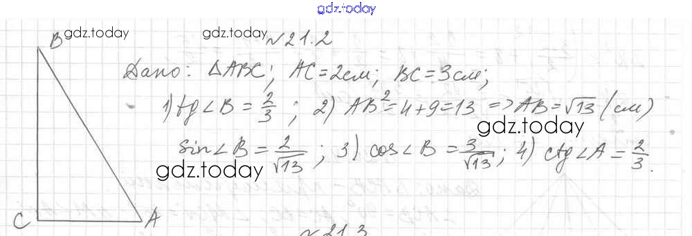 На страницах сайта gdz.today вы найдете учебный и вспомогательный материал, направленный на улучшения знаний школьной программы. ГДЗ - онлайн мир знаний § 21. Тригонометрические функции острого угла прямоугольного треугольника Решение к главе 4. Решение прямоугольных треугольников 2 Учебнику по Геометрии для 8 класса Мерзляк, Поляков Углубленный уровень Вентана-граф Алгоритм успеха 2020