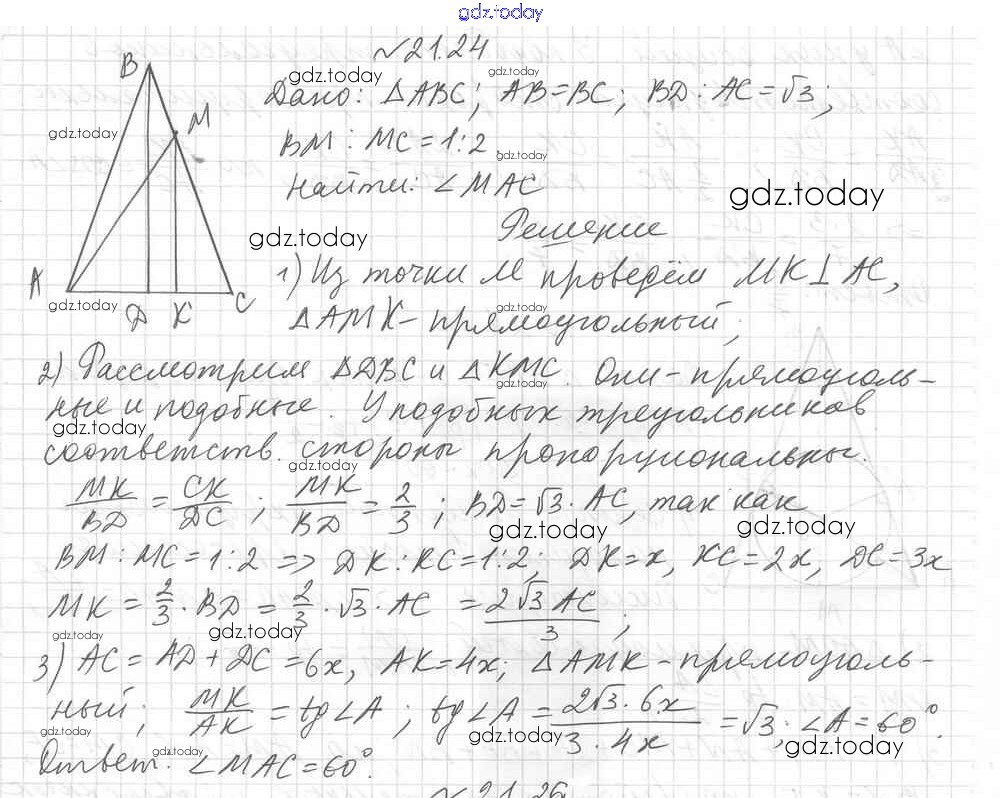 Ответы к § 21. Тригонометрические функции острого угла прямоугольного треугольника Решение к главе 4. Решение прямоугольных треугольников 24 Учебнику по Геометрии для 8 класса Мерзляк, Поляков Углубленный уровень Вентана-граф Алгоритм успеха 2020