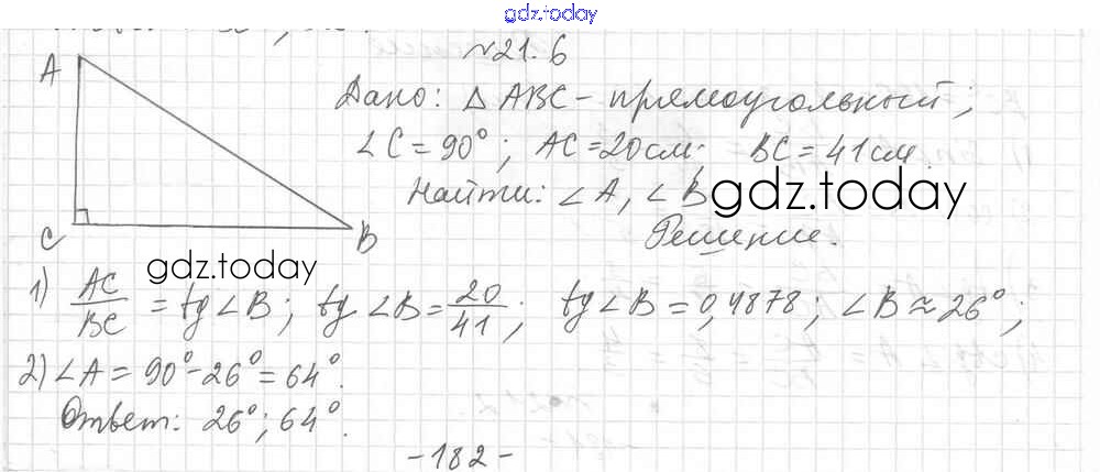 На страницах сайта gdz.today вы найдете учебный и вспомогательный материал, направленный на улучшения знаний школьной программы. ГДЗ - онлайн мир знаний § 21. Тригонометрические функции острого угла прямоугольного треугольника Решение к главе 4. Решение прямоугольных треугольников 6 Учебнику по Геометрии для 8 класса Мерзляк, Поляков Углубленный уровень Вентана-граф Алгоритм успеха 2020