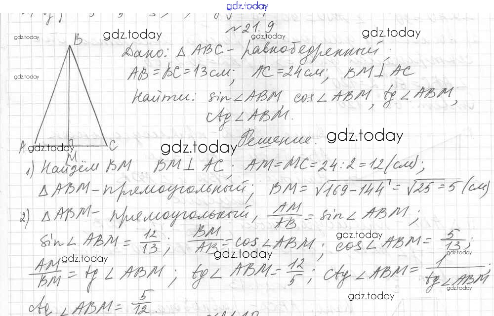 Ответы к § 21. Тригонометрические функции острого угла прямоугольного треугольника Решение к главе 4. Решение прямоугольных треугольников 9 Учебнику по Геометрии для 8 класса Мерзляк, Поляков Углубленный уровень Вентана-граф Алгоритм успеха 2020