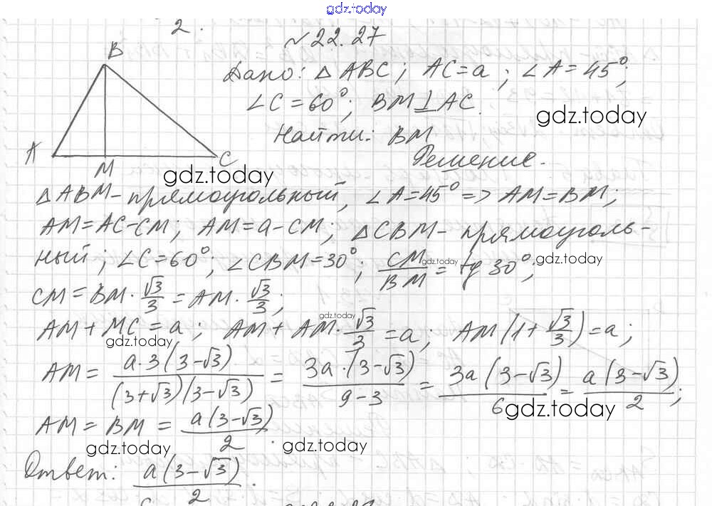 На страницах сайта gdz.today вы найдете учебный и вспомогательный материал, направленный на улучшения знаний школьной программы. ГДЗ - онлайн мир знаний § 22. Решение прямоугольных треугольников Решение к главе 4. Решение прямоугольных треугольников 27 Учебнику по Геометрии для 8 класса Мерзляк, Поляков Углубленный уровень Вентана-граф Алгоритм успеха 2020