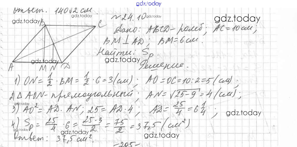 Ответы к § 24. Площадь параллелограмма Решение к главе 5. Площадь многоугольника 10 Учебнику по Геометрии для 8 класса Мерзляк, Поляков Углубленный уровень Вентана-граф Алгоритм успеха 2020