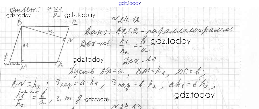 Ответы к § 24. Площадь параллелограмма Решение к главе 5. Площадь многоугольника 12 Учебнику по Геометрии для 8 класса Мерзляк, Поляков Углубленный уровень Вентана-граф Алгоритм успеха 2020