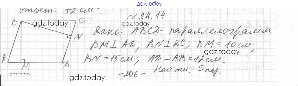 Ответы к § 24. Площадь параллелограмма Решение к главе 5. Площадь многоугольника 14 Учебнику по Геометрии для 8 класса Мерзляк, Поляков Углубленный уровень Вентана-граф Алгоритм успеха 2020